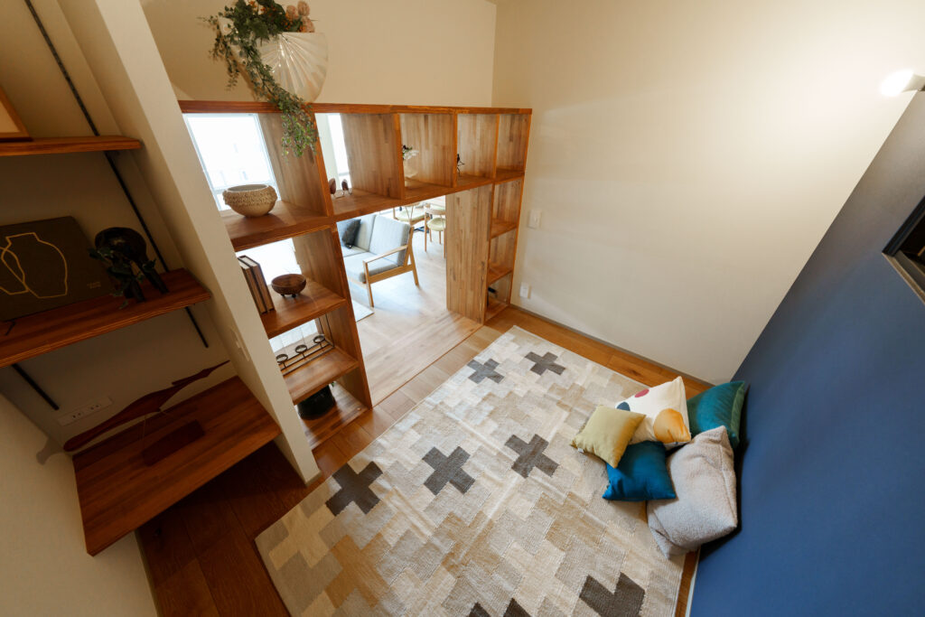 こちらのヌックは、壁に設置した造作棚の中央から中に入れるようになっています♪