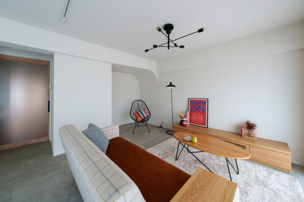 こちらの事例でも、リビングそばにヌックをつくりました(写真の丸いチェアがあるところがヌックです♪)。