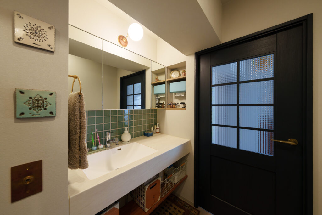 【藤丸】洗面台の大判のタイルも可愛いですね!