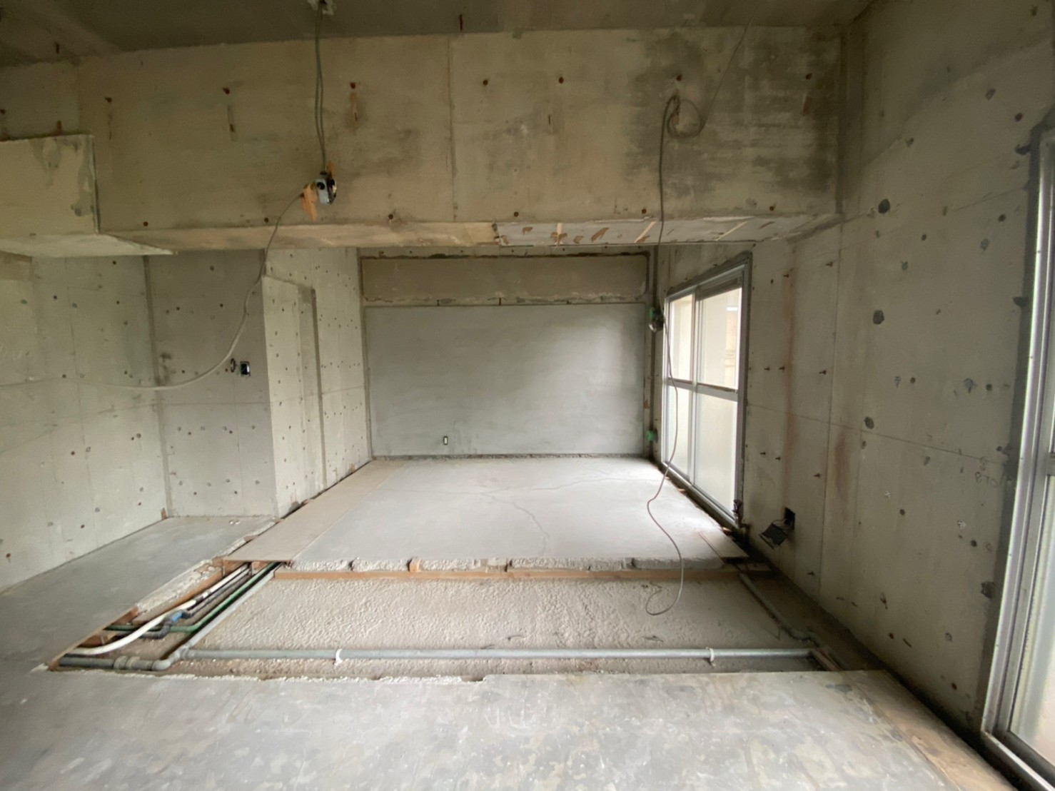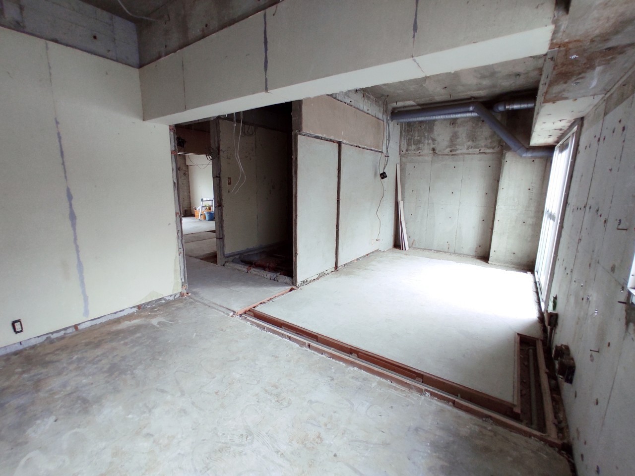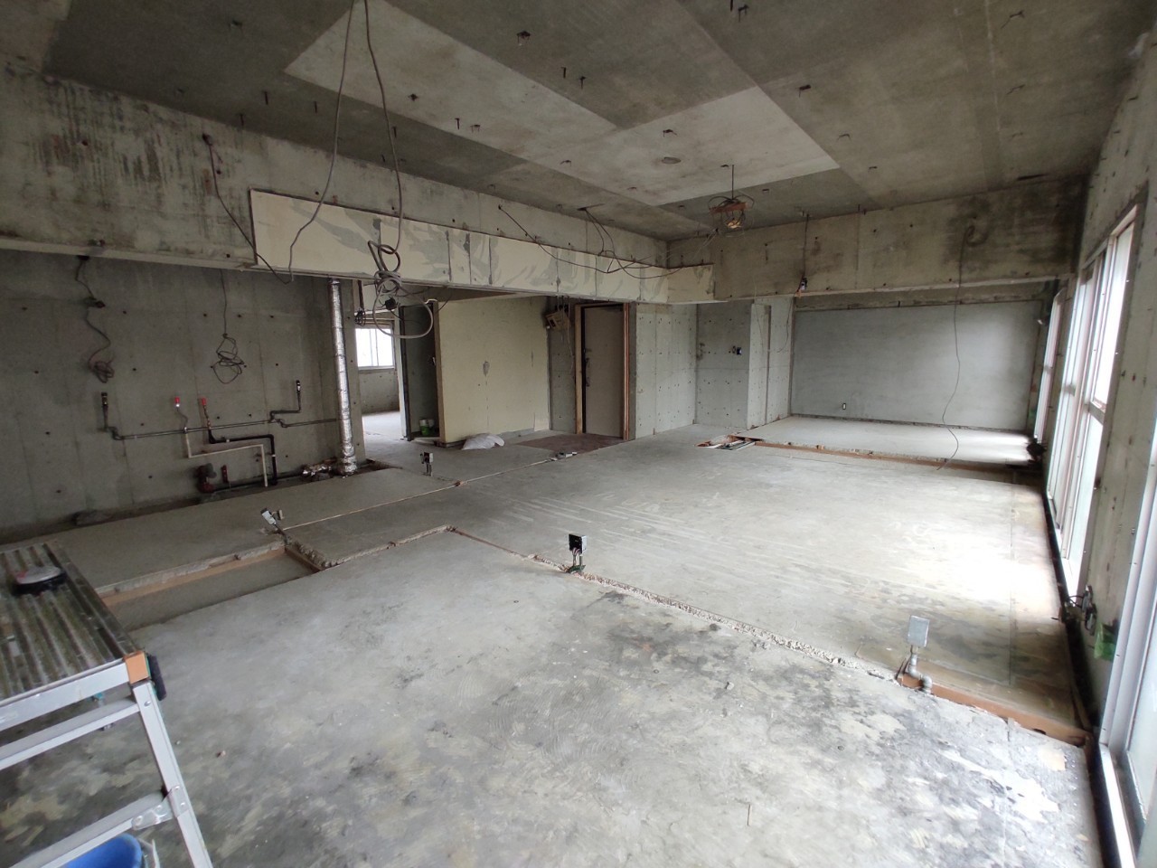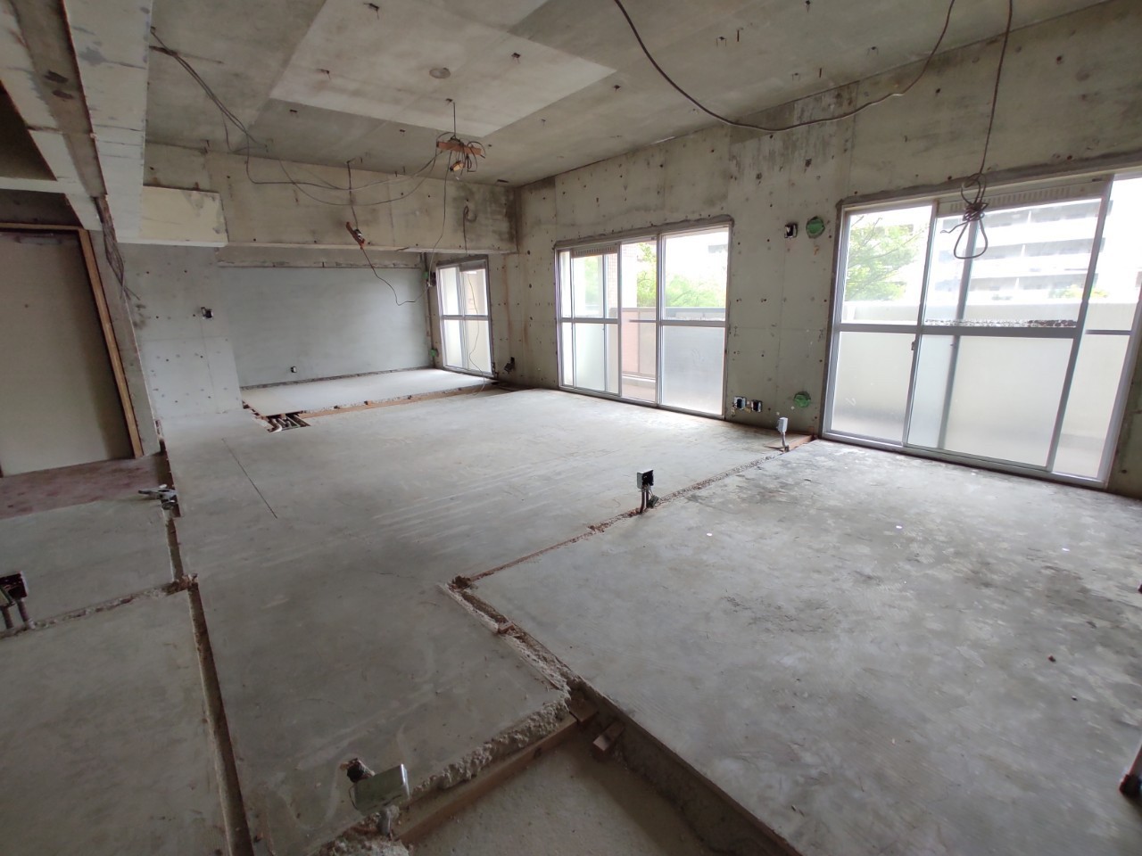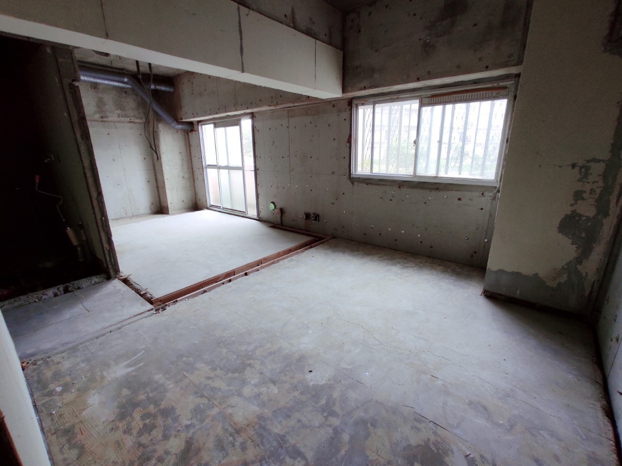 間仕切り壁はすべて解体済みで、躯体と言われるお部屋の外枠のみの状態です。
