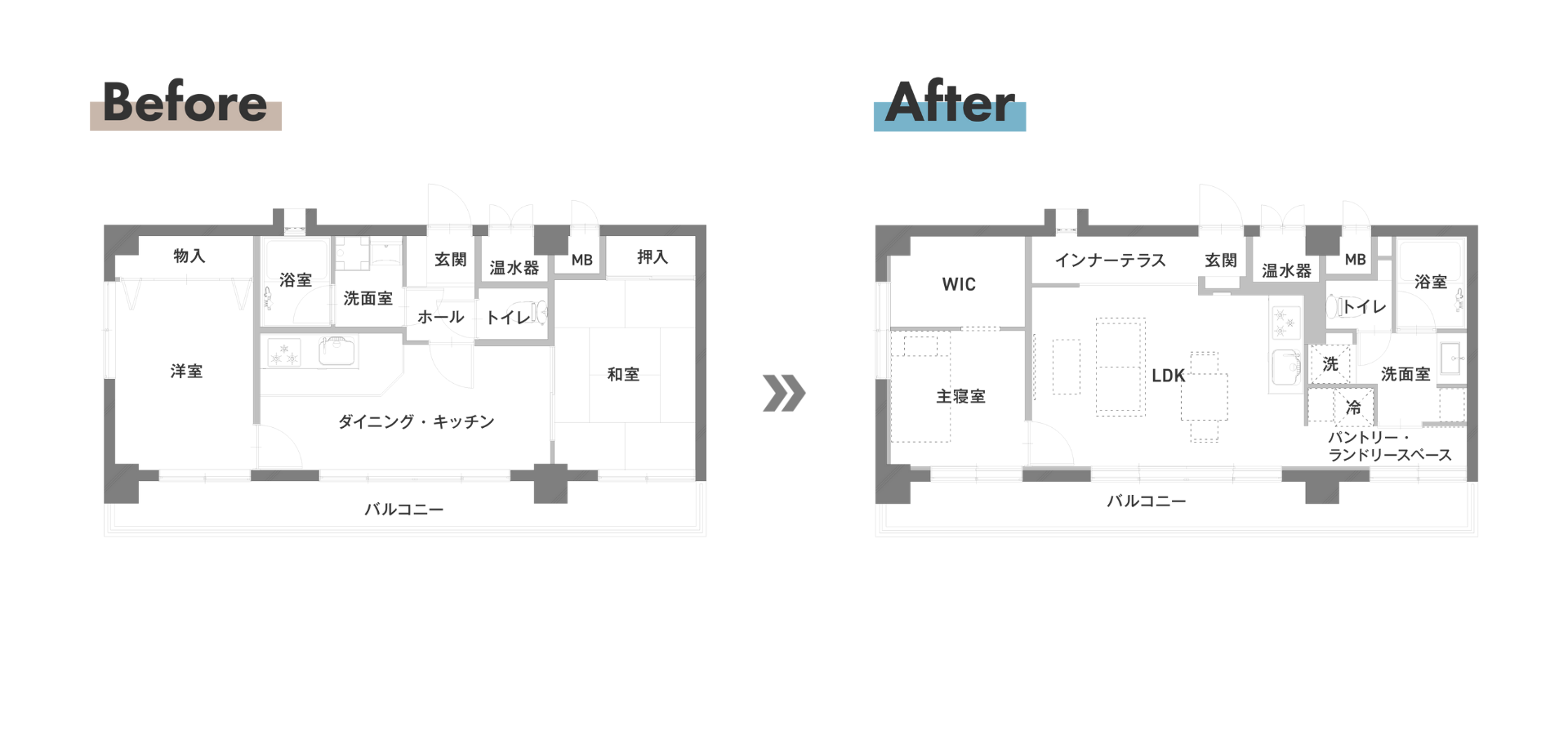 一方に集約させることで、家事動線と生活動線を快適に進化させました。