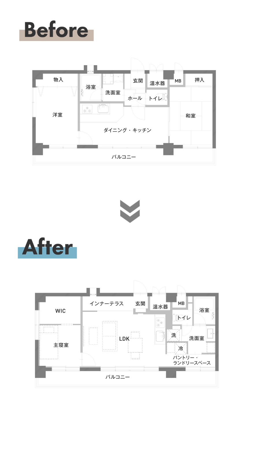 一方に集約させることで、家事動線と生活動線を快適に進化させました。