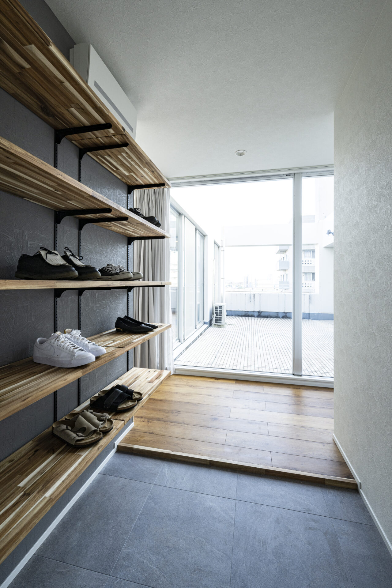 玄関を入ってすぐ、圧巻のルーフバルコニーからは光が降り注ぎます。