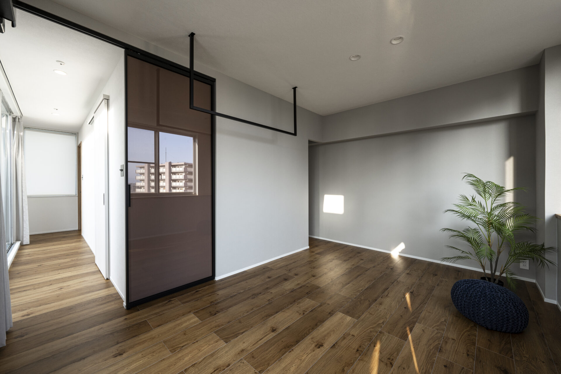 ・お部屋の中央にあるバルコニーから大きな窓を通して明るい光が入る