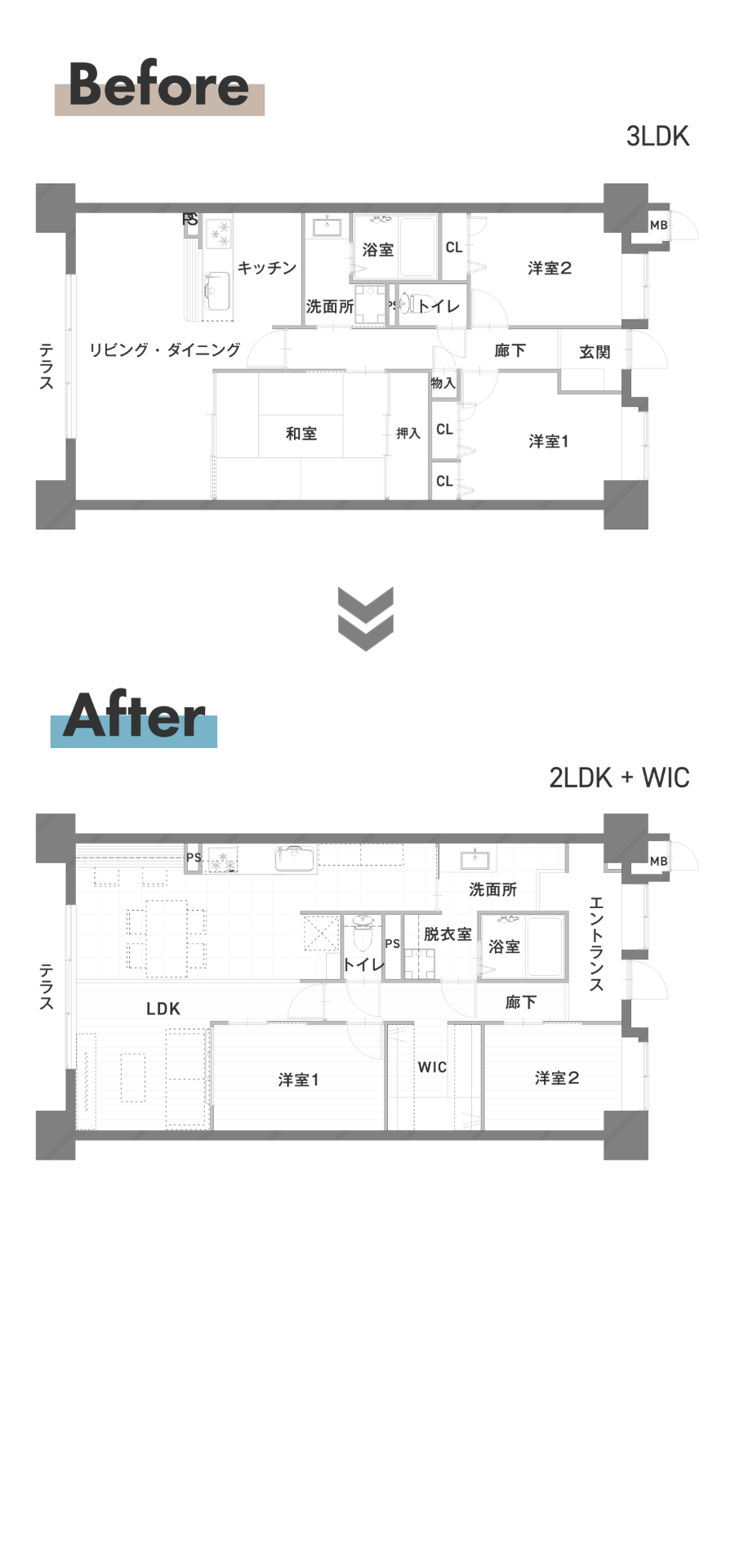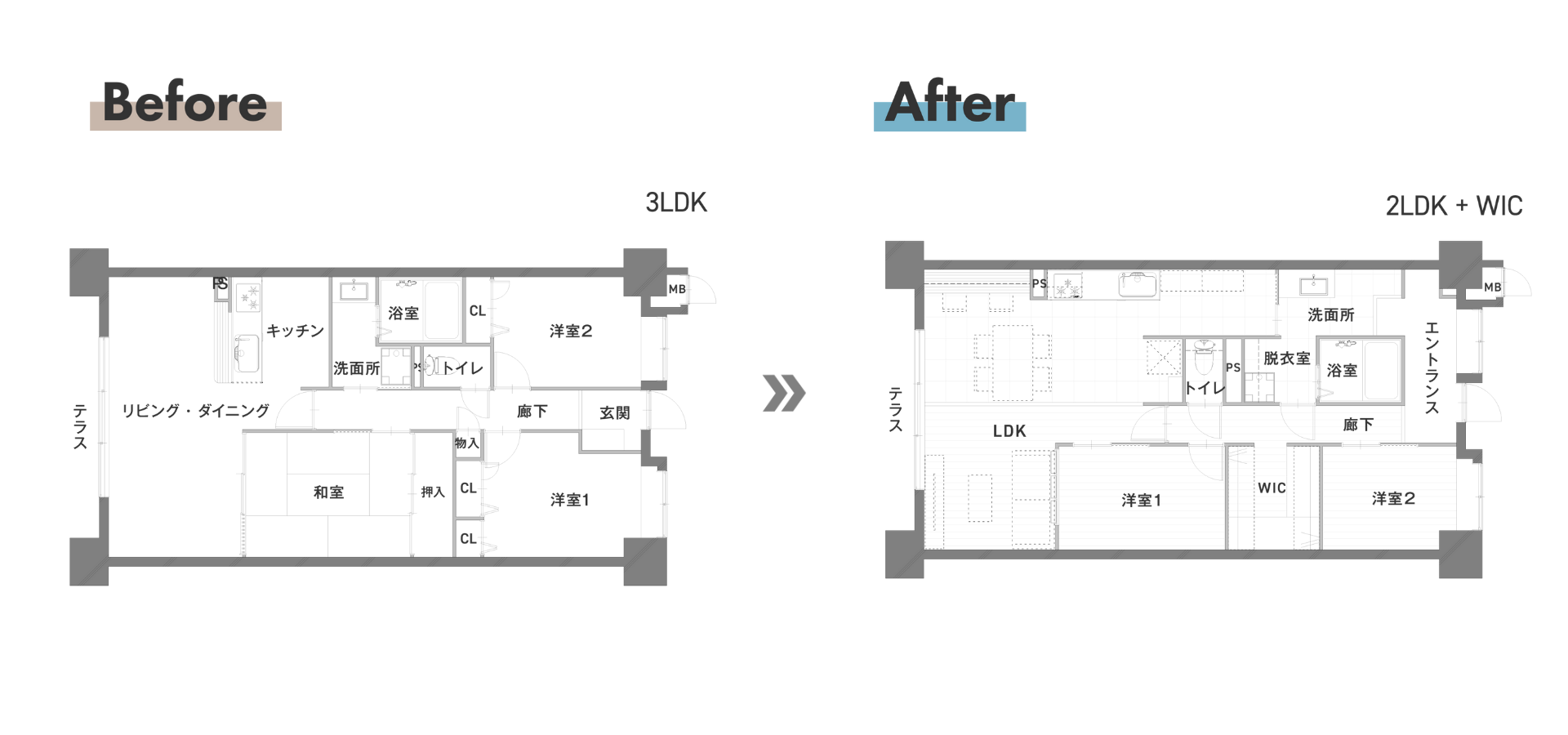 ライフスタイルに合わせて、将来2つの部屋に仕切れるよう、ドアは2つ設置しました。