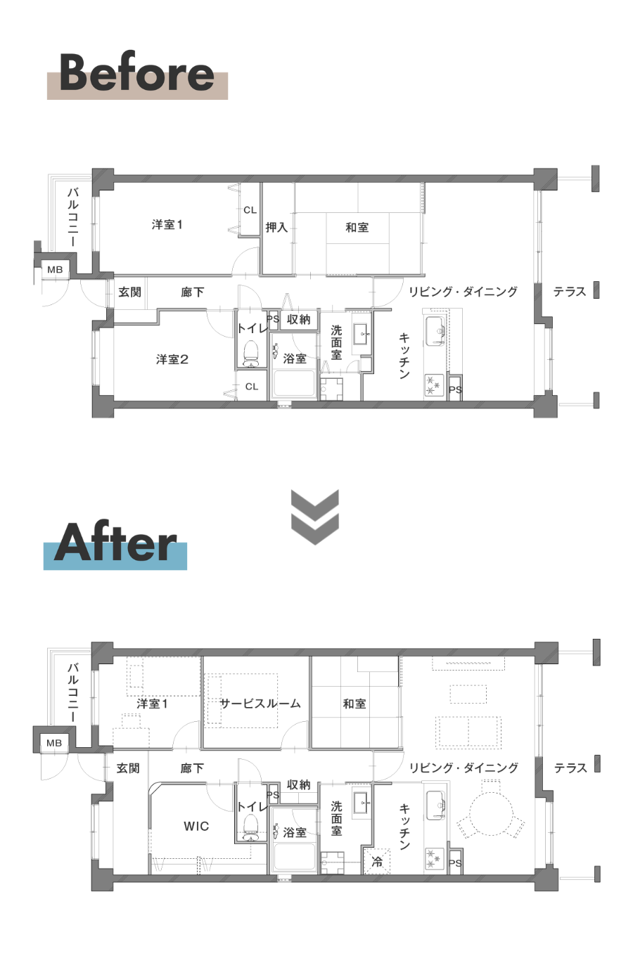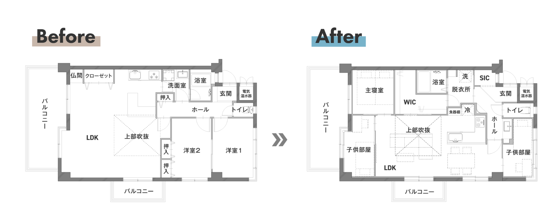 - 2LDK→ 3LDK+WTC