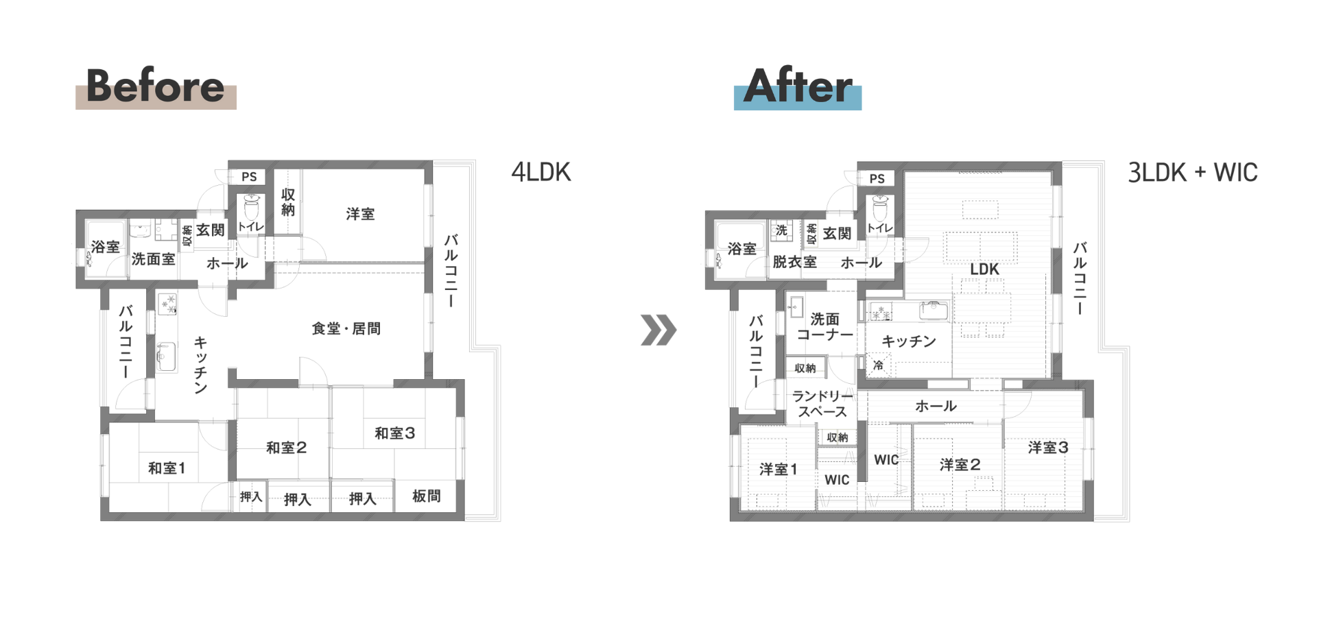 洗面は、キッチン・ホールと回遊できる間取りにすることで、