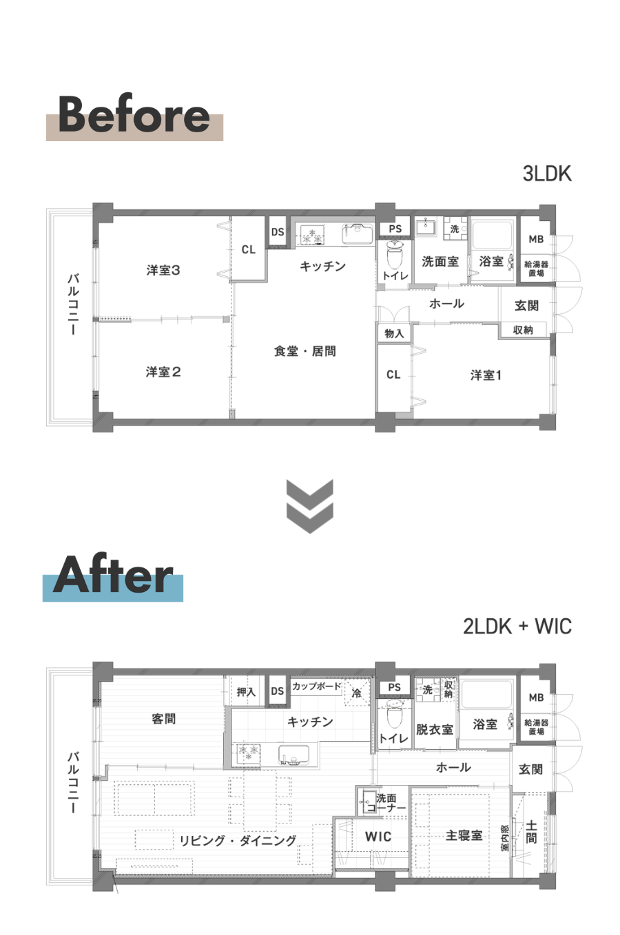 - 3LDK → 2LDK +WIC
