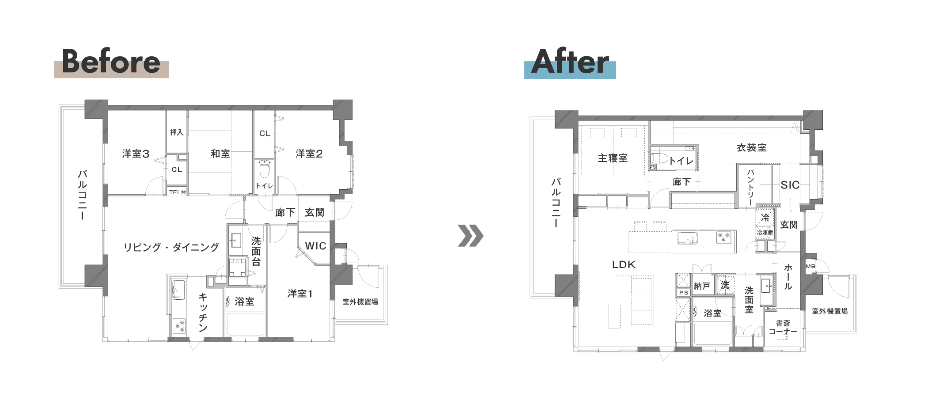- 3LDK → 1LDK +WTC+SIC+S