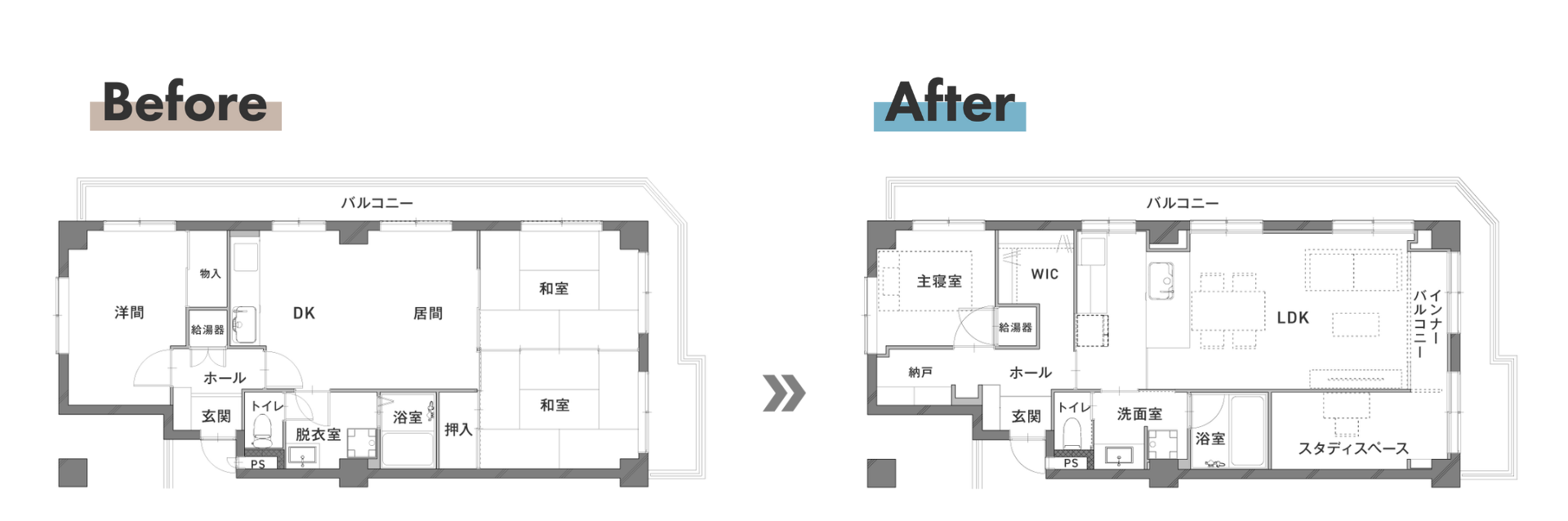 - 3LDK → 2LDK +WIC+S
