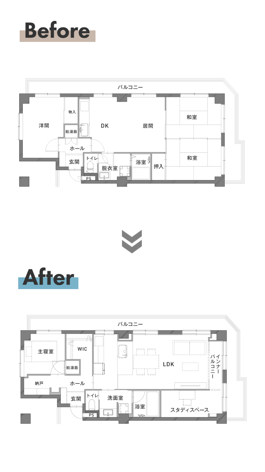- 3LDK → 2LDK +WIC+S